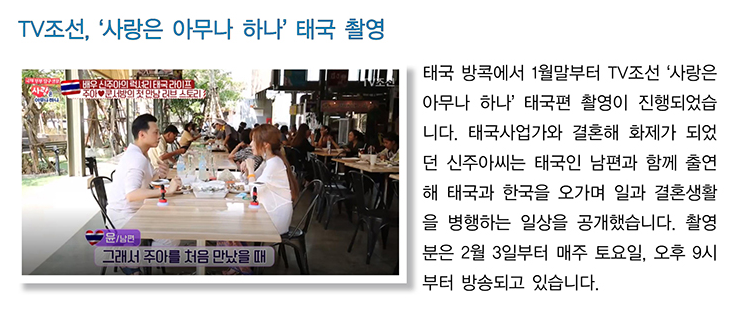 (2월) TV조선, '사랑은 아무나 하나' 태국 촬영