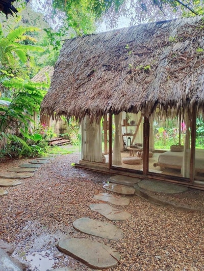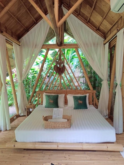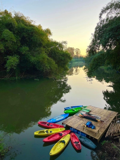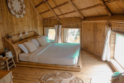 나콘나욕의 ‘Nokkhangkhun Glamping’은 자연 속의 고요함, 나무들, 바람 소리로 둘러싸인 아늑한 분위기가 매력적인 곳입니다.