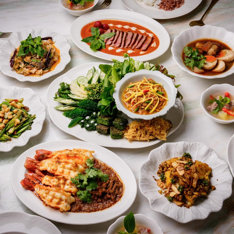 음식이 코스처럼 순서대로 나오는 것이 아니라 모든 요리가 한 번에 차려져 가족이 둘러앉아 함께 식사하던 태국의 전통을 재현한 것입니다. 한국의 식문화와 닮은 면이 있습니다.