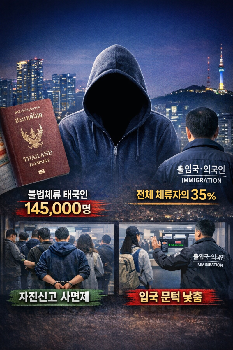 한국에 불법 체류 중인 외국인은 총 42만 명 수준인데, 이 가운데 태국인은 약 14만 5천 명으로 전체의 35% 정도를 차지하고 있습니다. 이는 2위인 베트남(약 8만 명)보다 무려 7만 명 이상 많은 수치입니다.