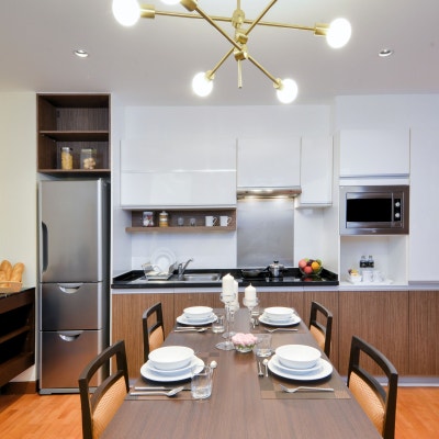 총 116개의 객실을 보유하고 있으며, 넓은 공간 활용이 특징이다. 각 객실에는 거실과 주방 공간이 분리되어 있고, 간이 주방(Kitchenette)과 완비된 조리 시설을 갖추고 있어 단기 투숙은 물론 장기 체류에도 적합하다. 공용 시설로는 푸른 정원으로 둘러싸인 대형 야외 수영장, 최신 설비를 갖춘 피트니스 센터가 마련되어 있다.