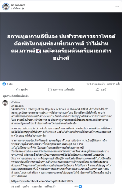 태국 북부 러이주의 공무원이라고 주장한 37세 여성은 SNS를 통해 이유 없이 인천공항에서 입국을 거부당했다고 주장했습니다. 해당여성은 여행 관련 태국어 페이스북에서 명확한 여행 일정이 있었고, 안정적인 직장을 가진 공무원으로서 모든 것이 분명했으며 이를 증명할 서류도 모두 갖추고 있었다고 밝혔습니다.