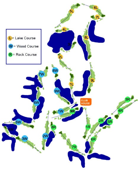 골프장은 Rock Course, Lake Course, Wood Course의 세 가지 코스로 구성되어 있으며, 각 코스는 이름에 걸맞은 뚜렷한 개성을 지니고 있다.