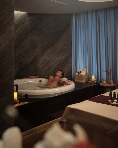 총 339개의 객실과 스위트룸을 보유하고 있으며, 바다의 생동감을 담은 컨템포러리 스타일로 꾸며져 있다. 모든 객실에는 대형 창문이 설치되어 있어 탁 트인 바다 전망과 풍부한 자연 채광을 즐길 수 있다. 공용 시설로는 워터 슬라이드와 물놀이 시설을 갖춘 대형 야외 수영장, 피트니스 센터, 그리고 명성 높은Spa가 마련되어 있다.